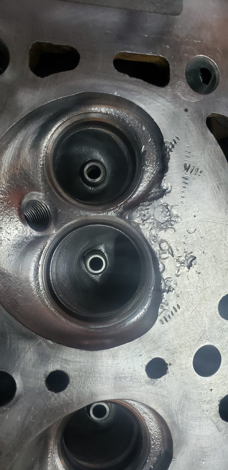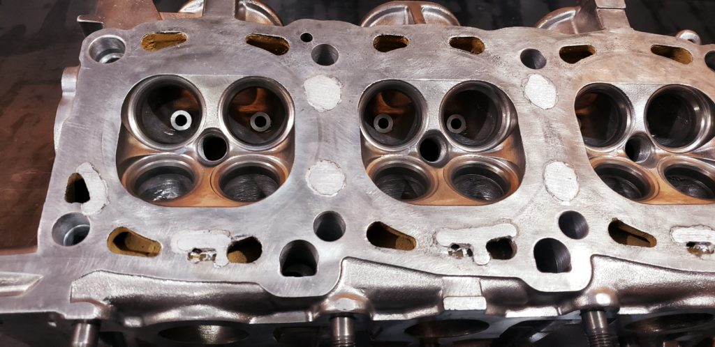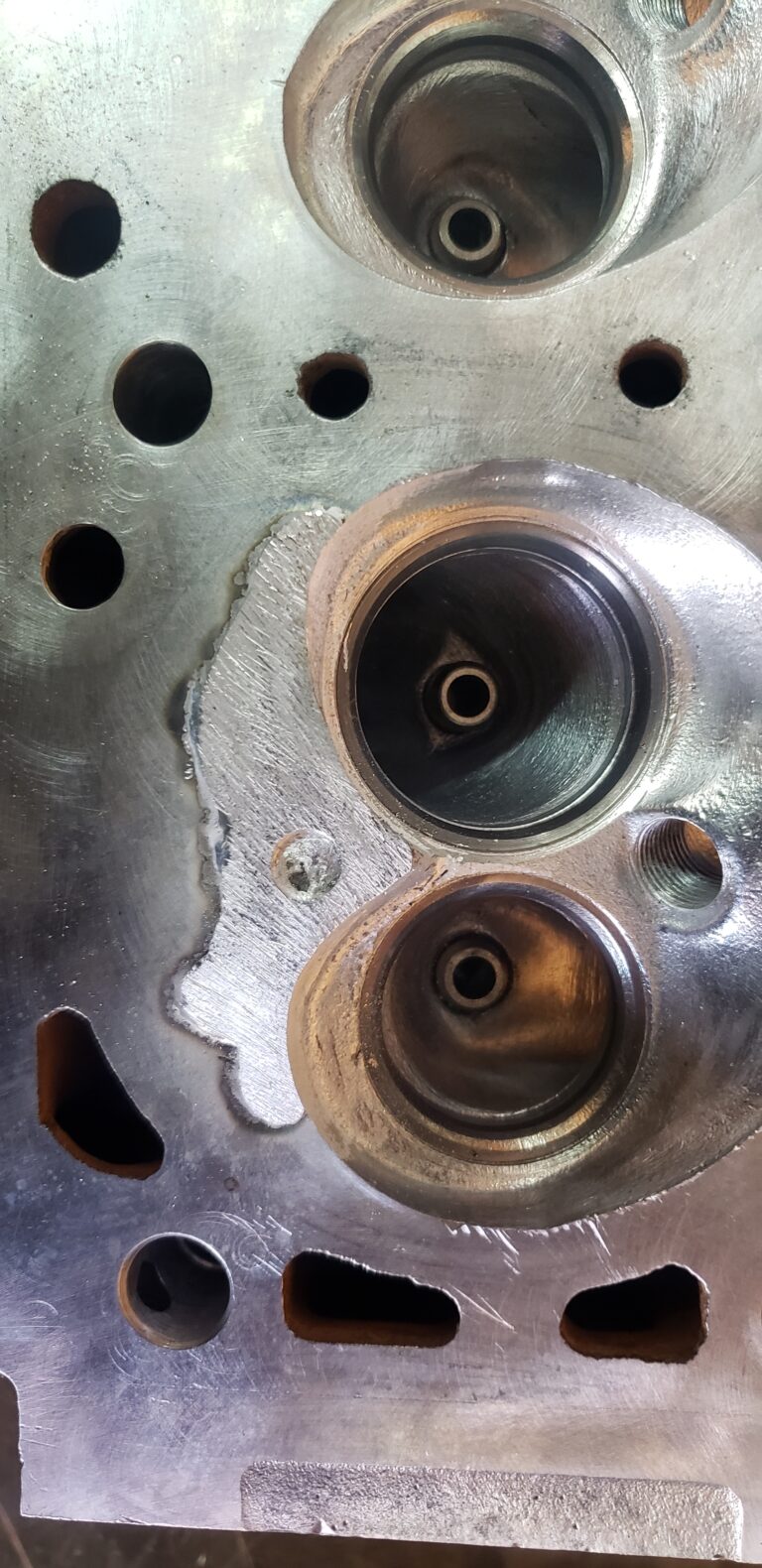 Aquí se observa el cabezote corregido las fallas sin embargo existen relieves que alteran el equilibrio de la parte superior del mismo lo cual se corrige cepillando.